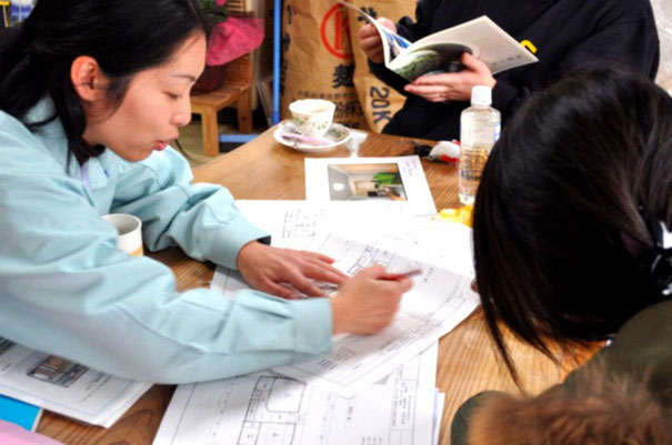 お客様のお話を聞き、設計士が間取りの設計をいたします(4-5日以内)。