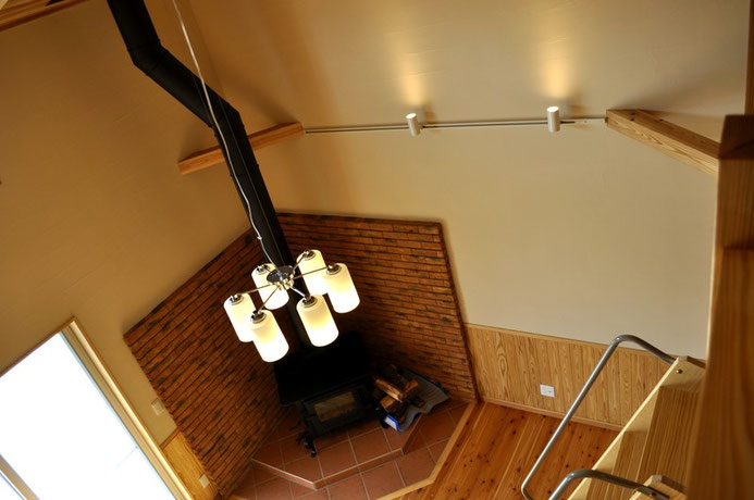 当社施工事例・吹き抜けにはダイナミックなシャンデリアが照明の主役に