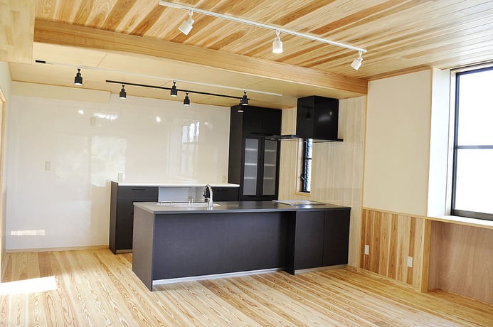 対面キッチンの中でも、I型キッチンと呼ばれるタイプは、キッチンに立った時に部屋全体を見渡せ、おしゃべりをしながらでも料理ができるところが魅力です。