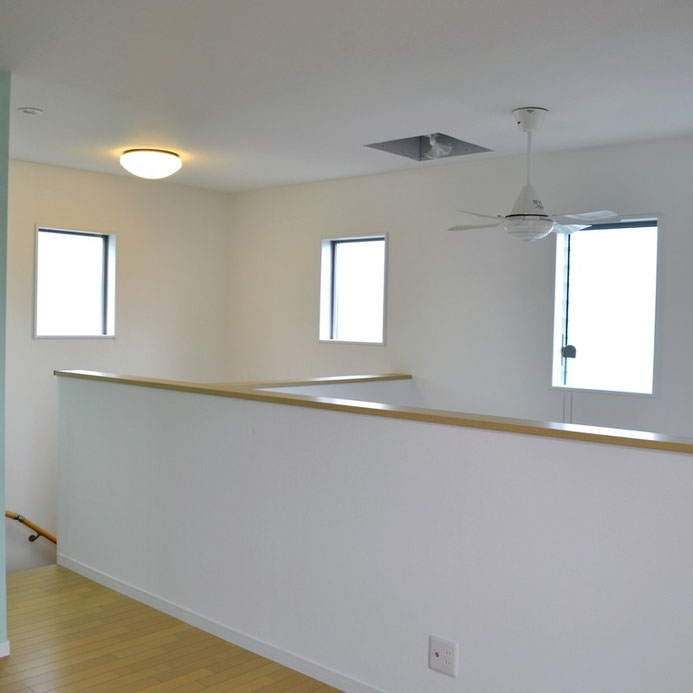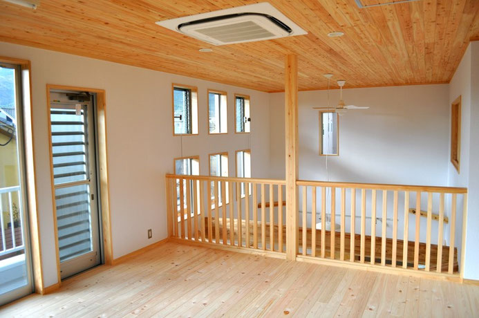 当社施工事例・吹き抜けのはめ込み窓とジャロジー