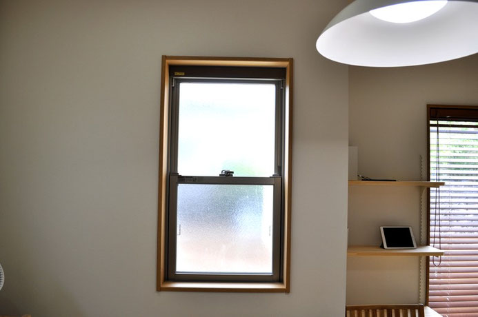 上部ははめ込みガラスで固定されており、下窓で開け閉めする構造になっています。