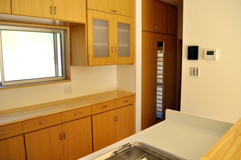 設備の配置が使い勝手を高めるデザインの作り付け家具
